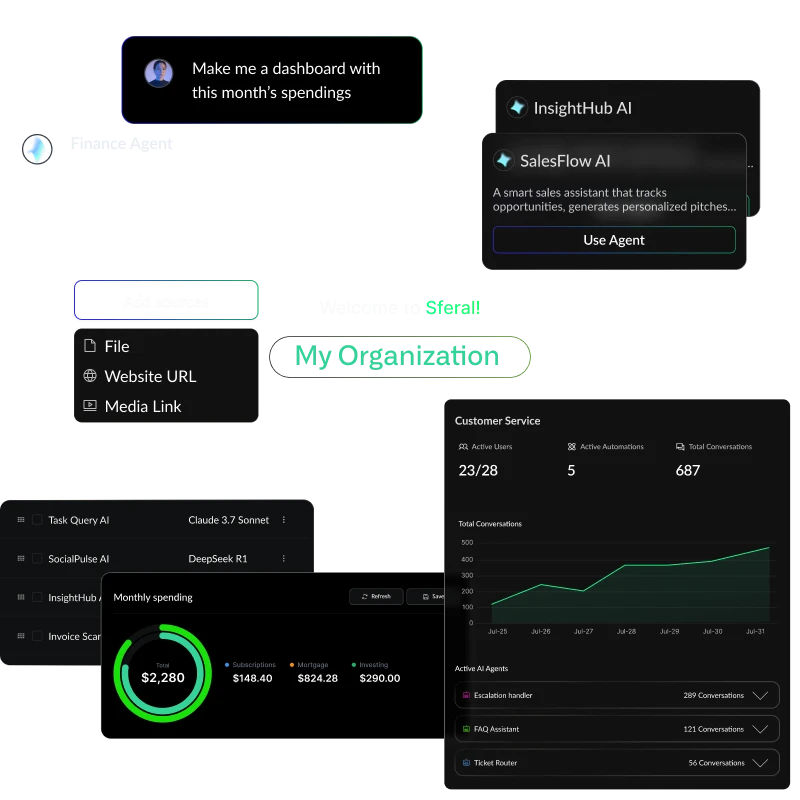 Mid-sized companies hit a growth wall because every new step requires more people, more manual work, and more complexity. Sferal is the platform where companies build and run AI agents that automate repetitive tasks, scale expertise across teams, and orchestrate workflows in one secure hub.